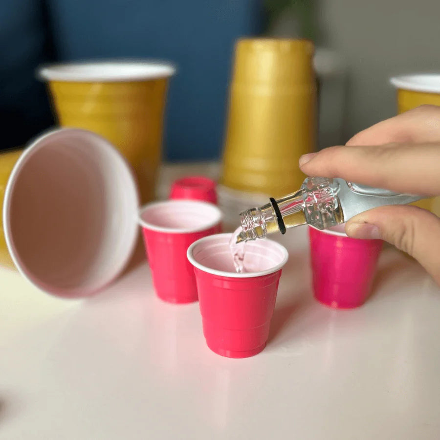 Sie sind perfekt für jede Feier oder den geselligen Abend mit Freunden. Mit kräftigenFarben in rot, schwarz, gold und pink ziehen sie garantiert alle Blicke auf sich. Jeder Becher bietet dir ein Fassungsvermögen von 2 oz, also etwa 60 ml - genau richtig für einen kräftigen Schluck.